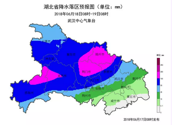 明天雨水逐步向東擴散并加強,預計明天十堰、襄陽、隨州、荊門等西部和中部一帶將陸續(xù)出現大到暴雨,局部大暴雨。
