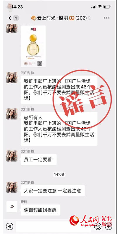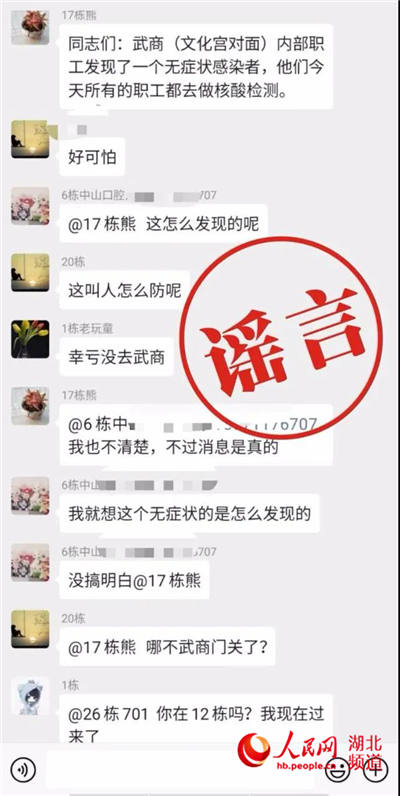 人民網(wǎng)武漢4月11日電 近日,關(guān)于一些微信群傳播“武商集團(tuán)員工中出現(xiàn)大量新冠病毒無癥狀感染者”的信息,引起市民恐慌。今日,武商集團(tuán)發(fā)布聲明,稱相關(guān)消息系謠言。目前,集團(tuán)已向公安機(jī)關(guān)報案,將通過法律手段,對造謠者追究法律責(zé)任。