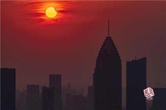 圖為楚天都市報記者在漢口沿江大道高樓上拍攝的日偏食圖為楚天都市報記者在漢口沿江大道高樓上拍攝的日偏食