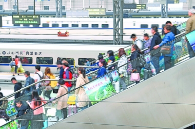 4月30日,漢口火車站,隨著“五一”假期到來(lái),鐵路客流迎來(lái)高峰。人們或返鄉(xiāng)團(tuán)聚,或外出旅游,踏上各自的旅程 記者詹松 通訊員代能躍 攝  4月30日,漢口火車站,隨著“五一”假期到來(lái),鐵路客流迎來(lái)高峰。人們或返鄉(xiāng)團(tuán)聚,或外出旅游,踏上各自的旅程 記者詹松 通訊員代能躍 攝