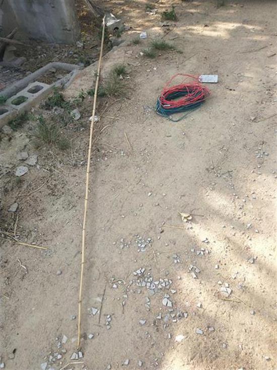 經(jīng)調(diào)查,青石鎮(zhèn)大葉山村與馬河村交界處新修一條水泥路,需要灑水保護(hù)路面,何某明用小型抽水泵準(zhǔn)備在河邊抽水,由于沒有電源,完全不懂電力知識的他竟動起了歪腦筋。他在水泥路附近,用竹篙將電線搭到了附近11000V高壓電線上,只聽“轟”的一聲巨響,一團(tuán)火球?qū)㈦娋€燒壞,將何某明嚇的呆立一旁。