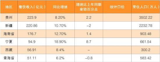 排名最后六位的內(nèi)地省份。圖片來源:《中國餐飲業(yè)年度報告》排名最后六位的內(nèi)地省份。圖片來源:《中國餐飲業(yè)年度報告》
