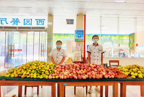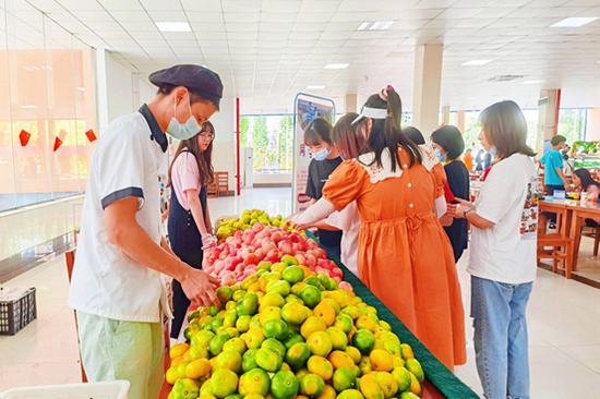 餐廳經(jīng)理石杰介紹,為了迎接新生、回饋老顧客,西園餐廳各檔口商家提前半個(gè)月準(zhǔn)備了4種水果,每種1000多斤,希望五湖四海的學(xué)生來到學(xué)校能有一種回家的感覺。
