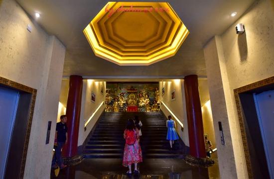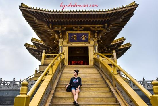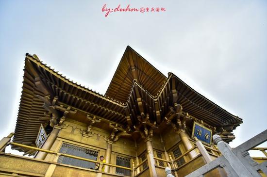 我們從南門(mén)步步攀登,層層向上,工作人員介紹,需經(jīng)過(guò)七層建筑方可到達(dá)最高的金頂。
