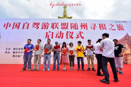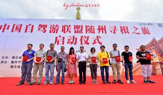 隨州相關(guān)領(lǐng)導(dǎo)為大家扮發(fā)旅行護(hù)照及宣傳證書(shū)。