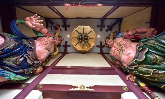 整個(gè)建筑群依山而建,坐北朝南,以大雄寶殿為中心,成十字形展開(kāi),中軸線主體建筑由山門(mén)、天王殿、大雄寶殿、法堂依次展開(kāi)。