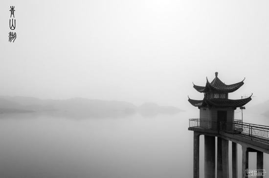 黑白照片減去了多余色彩的干擾,僅剩下簡單的兩色,似乎更能體現(xiàn)青山湖的水墨意境,也讓人能更加凝神靜氣地欣賞青山湖與眾不同的妖嬈美。