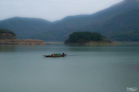 遼闊的水面上霧靄蒸騰,座座青山點綴其間??~緲間,這座座青山像是會浮動,在我的眼前不停游走。或許,這青山原本就是從天上飛來的仙山,還是白娘子使出了千年的法力,讓群山給我們奉上了絕美的山水盛宴?