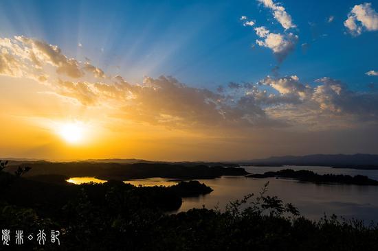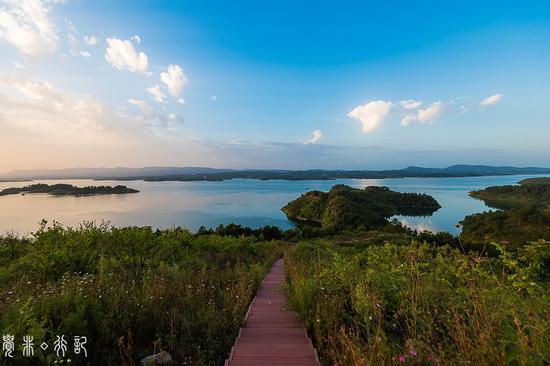 從滄浪海出來,沿著最美的環(huán)庫路駛向千島畫廊,一路風景。抵達千島畫廊時,即將日落,絢爛的晚霞,映照著整個丹江口。