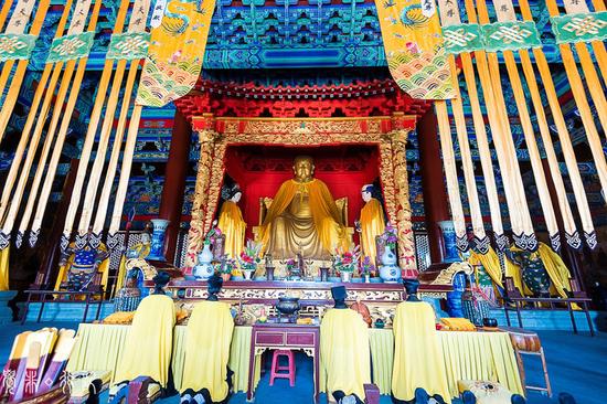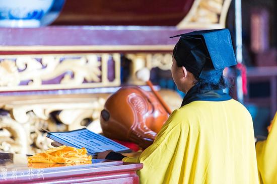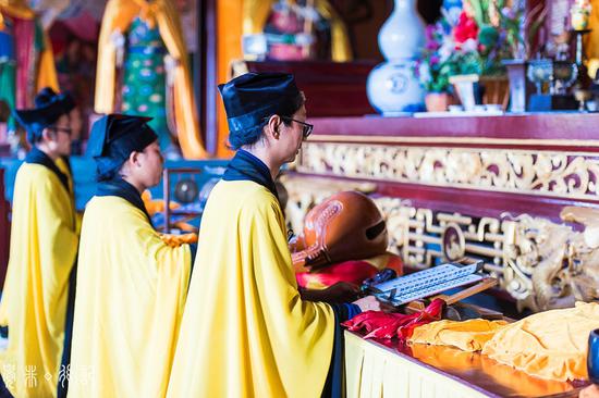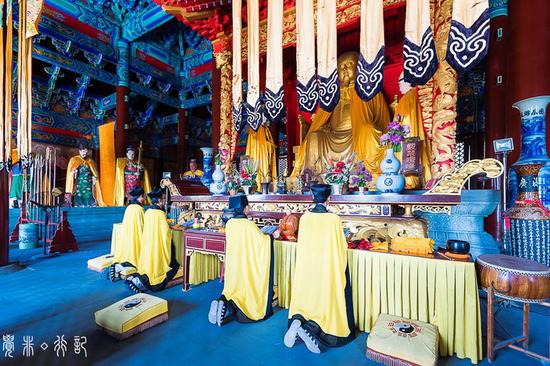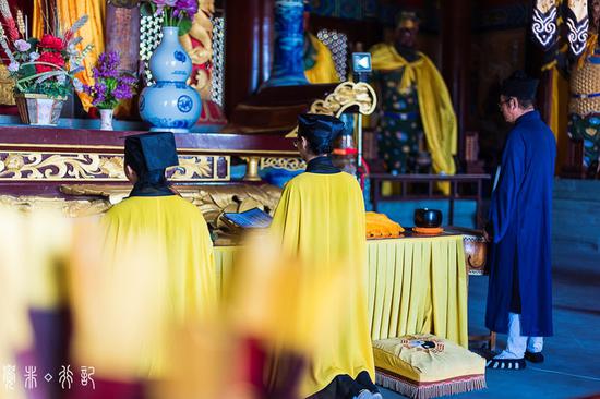 復建的靜樂宮位于丹趙路街道東郊北坡,與原靜樂宮風格相似。走不進淹沒在水里的靜樂宮,只能在新建的宮中懷古嘆今。幸而,在新建的建筑里,生活著修行的道士,每天誦經(jīng)、打坐、習武,讓這個承載著前世記憶的新靜樂宮真的就變成了印象中靜樂宮的樣子。