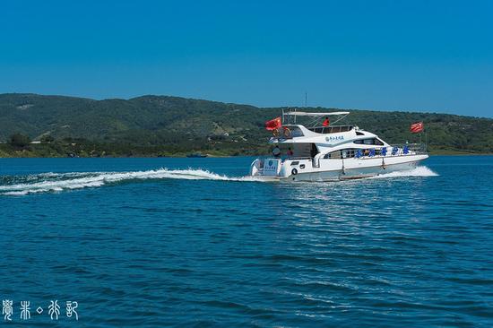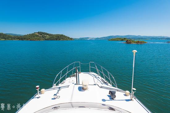 滄浪海位于丹江口大壩右岸,從滄浪海游船碼頭乘著快艇,在碧水藍天中迎著風去往水庫深處。在丹江水最寬廣的時候,真的如大海般廣闊在現(xiàn)代的快艇上快速劃過,自然聽不見古老的漁父歌,然而,只是“滄浪”二字,便有足夠的魔力,讓我的思緒飄向古老的曾經(jīng)。