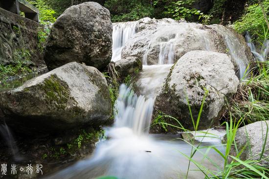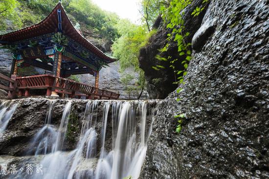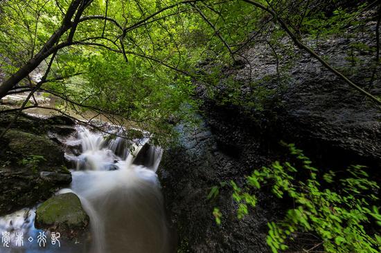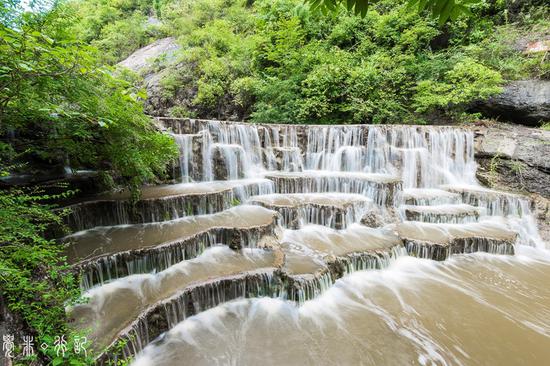 從山頂下來,深入峽谷,在綠樹的掩映下,用雙腳丈量太極的分界線。峽谷幽深,不時便會遇見小瀑布,讓整個夏日都變得清涼。因為抵達丹江口的前一天下了一場大暴雨,太極峽的水沒有日常的清澈,但飛流瀑布間,依舊風情。