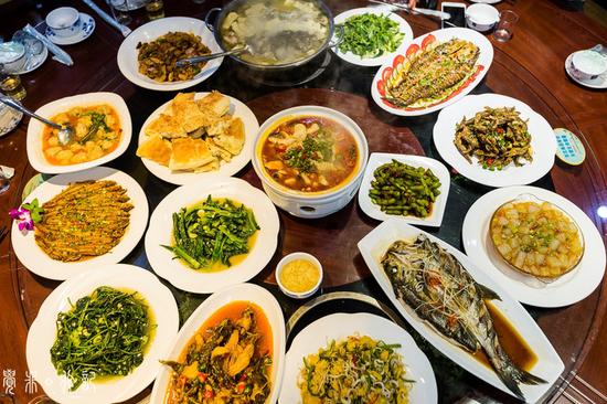在丹江口,自然每一頓都離不開魚,最有特色的是丹江口全魚宴,在均州漁港的游船餐廳,看著江邊漁火,吃著水中新鮮的野生魚,品嘗最天然的美味。此行品嘗了袁老三水上酒家的全魚宴,天然野生,加上廚師原始的烹飪方式,色香味美,回味悠長。