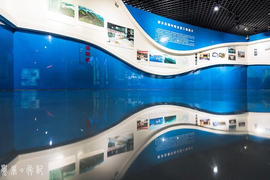 在丹江口工程展覽館中,圖文并茂,展示著大壩的前世今生,展示著中國水都的一往直前,也展示著南水北調(diào)中線工程的成果。在展覽館中,曾經(jīng)工程建設(shè)的困難,曾經(jīng)背井離鄉(xiāng)的壯舉與心酸,都變成了故事,向后人訴說。