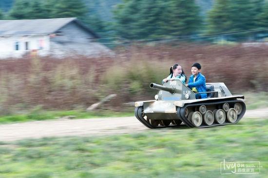 不用動員,孩子們已經(jīng)沖上去了,那還說啥,大人當(dāng)然是要欣賞風(fēng)景的,但是在孩子們眼里,那些風(fēng)光哪有開坦克過癮?