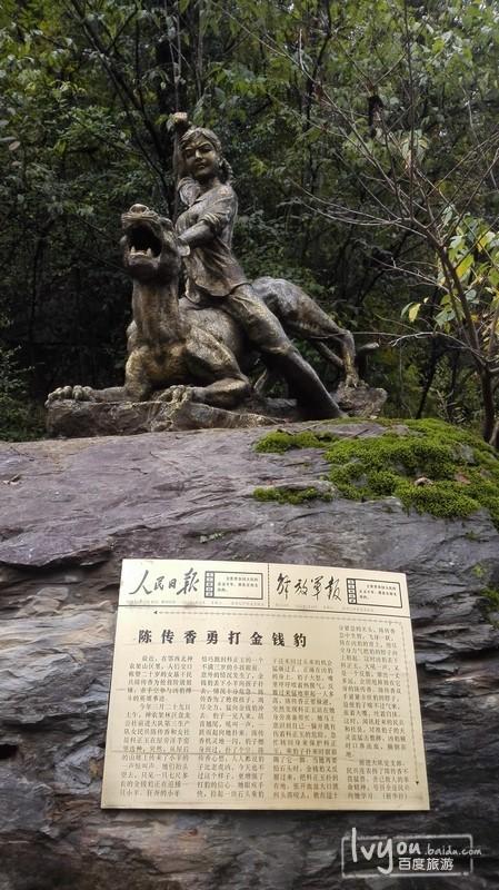 出了地貌廳就發(fā)現(xiàn)一座雕像,叫“陳傳香勇打金錢豹”,這個故事在當(dāng)時還是蠻英雄的,但是現(xiàn)在不可能了。陳傳香也已經(jīng)在08年去世了。