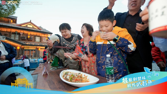 以大賽為契機(jī),五里界街道精心打造“又食武昌魚(yú)”品牌體驗(yàn)。在梁湖漫鄉(xiāng)提供新品試吃、現(xiàn)做現(xiàn)嘗、烹飪教學(xué)等互動(dòng)體驗(yàn);江夏里則聯(lián)動(dòng)推出“觀賽品魚(yú)+碼頭記憶體驗(yàn)+李白江夏行”系列活動(dòng),形成“賽事引爆、文化延續(xù)”的疊加效應(yīng)。無(wú)論是在美食工坊品嘗一條原汁原味的武昌魚(yú),還是在江夏里欣賞一場(chǎng)古色古香的碼頭文化表演,都能讓人沉浸于江夏獨(dú)有的風(fēng)情之中。