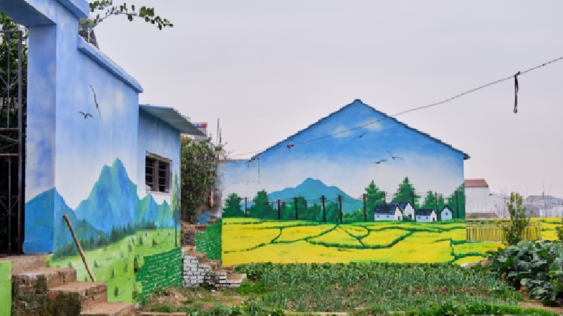 青山綠水 田園如畫!新洲區(qū)辛沖街3D彩繪扮靚集鎮(zhèn)環(huán)境
